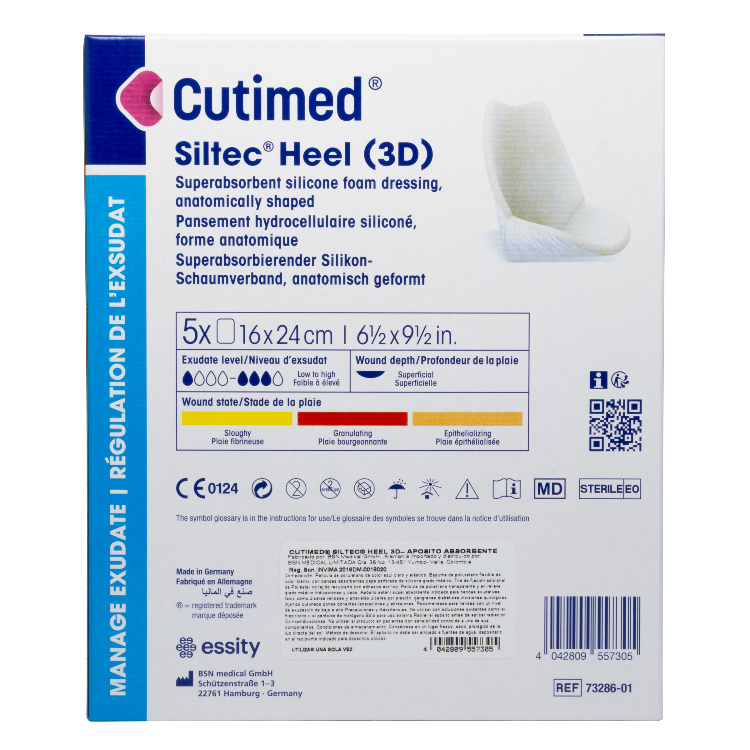 - Si es necesario, Cutimed® Siltec® PLUS Heel 3D se puede utilizar en combinación con otros apósitos, por ejemplo, Cutimed® Sorbact® (en caso de heridas infectadas) o Cutimed® Gel (para heridas secas y necróticas).