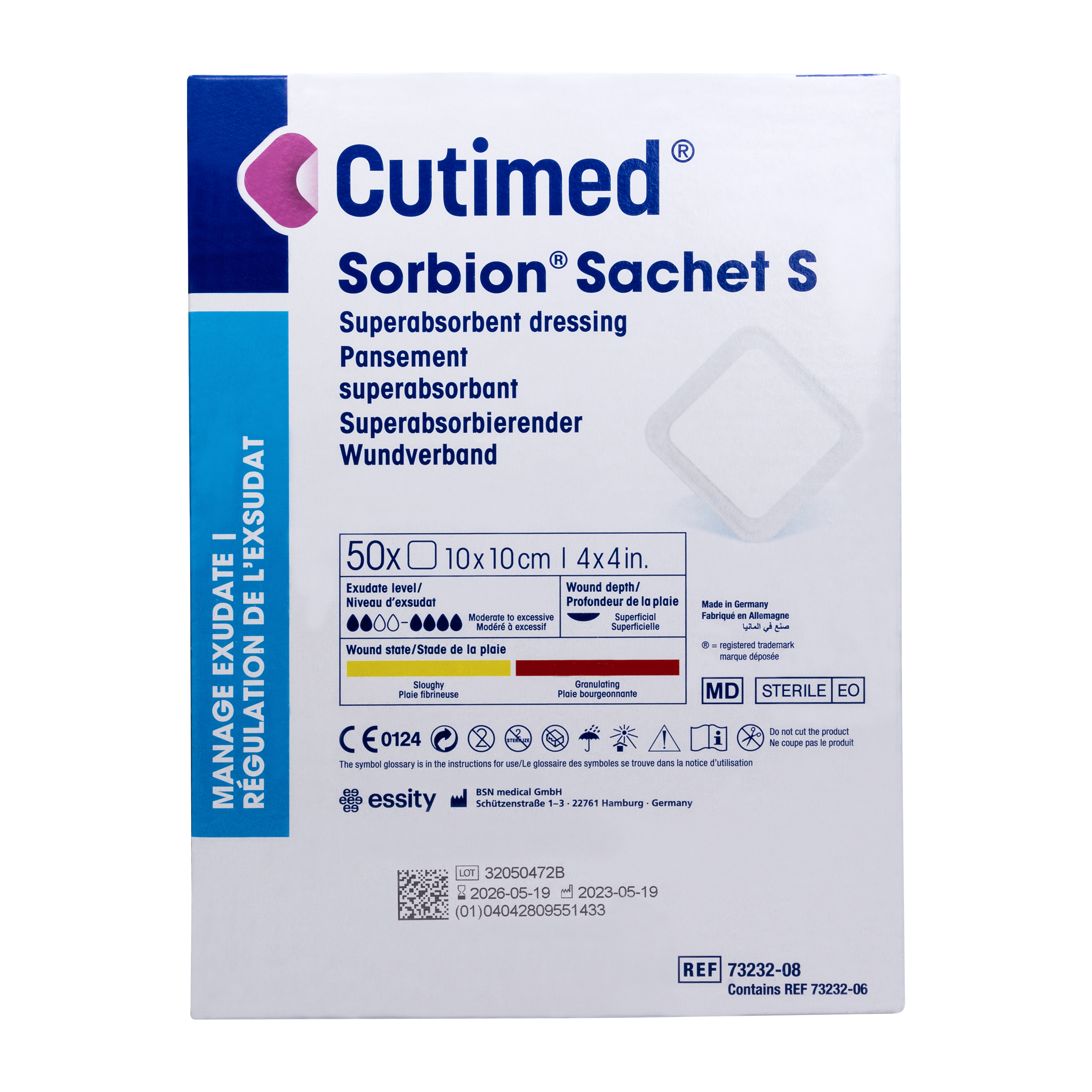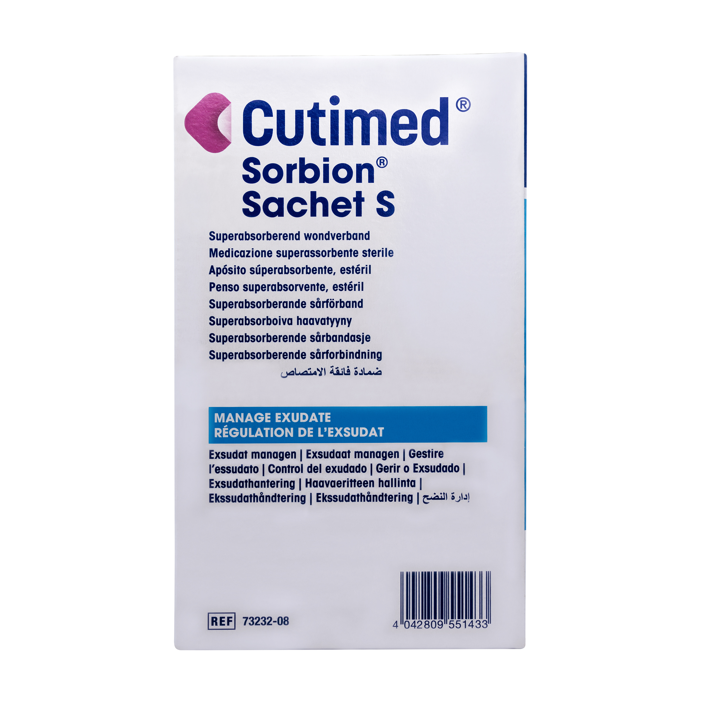 - Para remover Cutimed® Sorbion® Sachet S - Apósito superabsorbente estéril, retirar las cintas de fijación médicas, levantar una esquina, retirar con cuidado el apósito y desecharlo. Los residuos de la herida quedarán adheridos al apósito Cutimed® Sorbion®, lo que contribuye a la limpieza de la herida (desbridamiento suave).