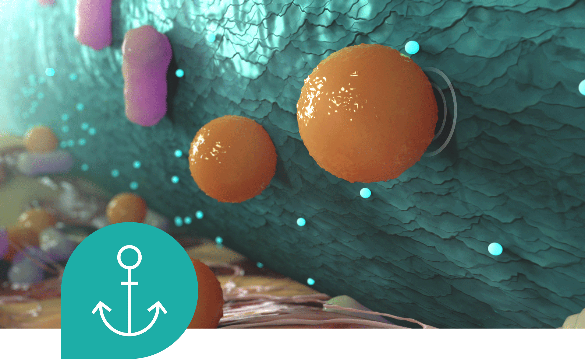 - ● Las bacterias se adhieren de forma natural y anclan a la superficie exclusiva de Sorbact®.